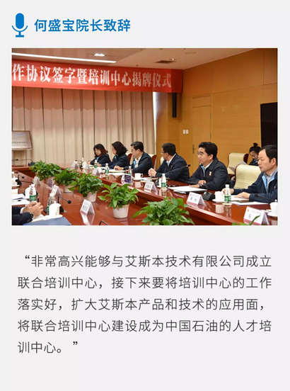 2019年11月13日,艾斯本技術(shù)有限公司和中國石油天然氣股份有限公司石油化工研究院聯(lián)合成立“艾斯本產(chǎn)品知識聯(lián)合培訓(xùn)中心”,并舉行培訓(xùn)合作協(xié)議簽約儀式、聯(lián)合培訓(xùn)中心揭牌儀式和艾斯本認(rèn)證用戶證書頒發(fā)儀式。